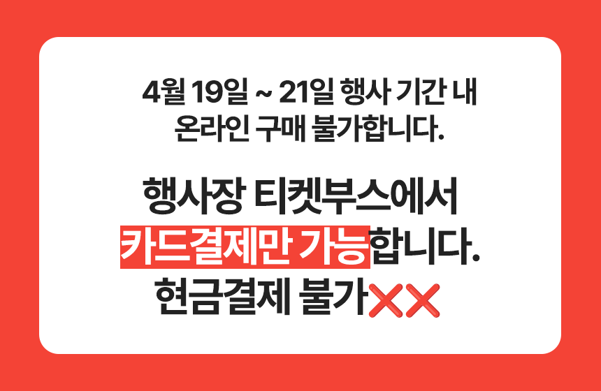 4월 19일 ~ 4월 21일은 현장결제만 가능합니다.